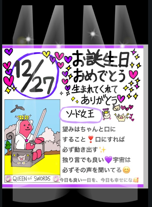 皆さま、こんにちは!プリンセスケイコ〜です😃 今日の気分はいかがですか?😊 12月27日お誕生日の皆さま… お誕生日おめでとう🎂🥰💐🎊㊗️🎉 生まれてくれて本当にありがとう🥳 今日のタロットメッセージ 今日のカード ソード女王 望みはちゃんと口に するこ... -