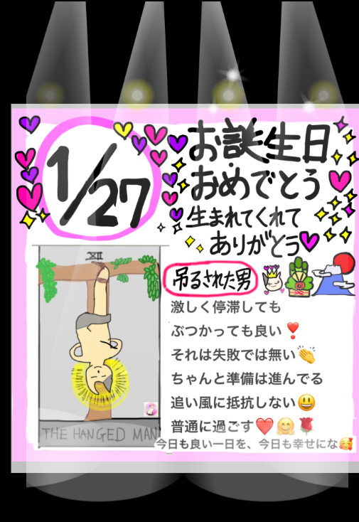 皆さま、こんにちは!プリンセスケイコ〜です😃 今日の気分はいかがですか?😊 1月27日お誕生日の皆さま… お誕生日おめでとう🎂🥰💐🎊㊗️🎉 生まれてくれて本当にありがとう🥳 今日のタロットメッセージ 今日のカード 吊るされた男 逆激しく停滞して... -