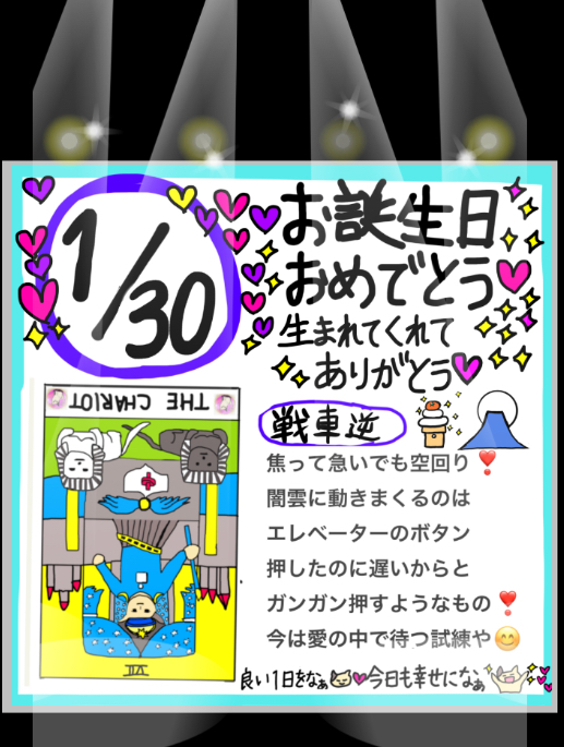 皆さま、こんにちは!プリンセスケイコ〜です😃 今日の気分はいかがですか?😊 1月30日お誕生日の皆さま… お誕生日おめでとう🎂🥰💐🎊㊗️🎉 生まれてくれて本当にありがとう🥳 今日のタロットメッセージ 今日のカード 戦車逆 焦って急いでも空回り ... -