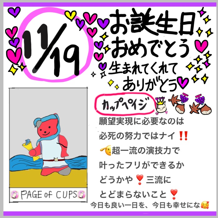 25/11/19 お誕生日おめでとう🎊タロットメッセと毎日の予祝ワーク付き🎵