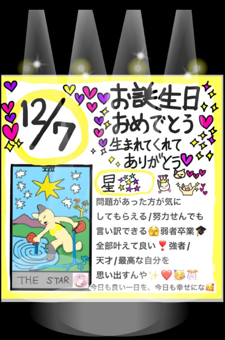 25/12/7 お誕生日おめでとう🎊タロットメッセと毎日の予祝ワーク付き🎵
