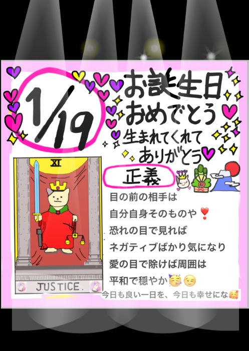 皆さま、こんにちは!プリンセスケイコ〜です😃 今日の気分はいかがですか?😊 1月19日お誕生日の皆さま… お誕生日おめでとう🎂🥰💐🎊㊗️🎉 生まれてくれて本当にありがとう🥳 今日のタロットメッセージ 今日のカード 正義逆 目の前の相手は 自分自... -